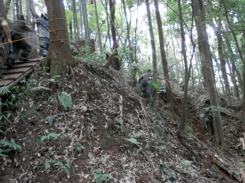 名物ヒル戦の一コマ。崖上に陣取った防衛チームのフラッグを復活無制限の猛攻で陥落させるアツイゲームなんですが、めっちゃ疲れます。