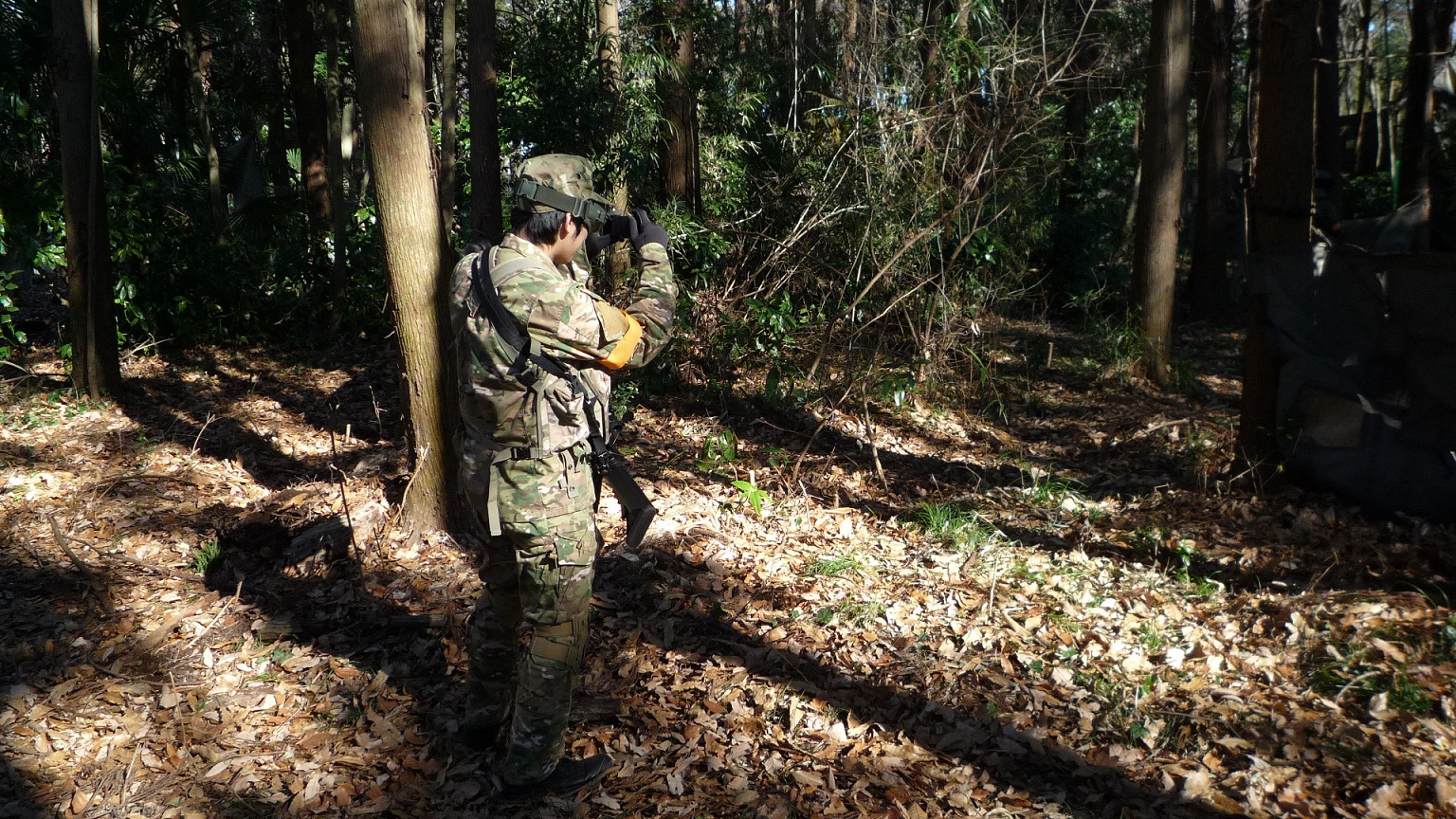 sakusakuは、夏用の陸自装備では寒くなってきたので、厚手のマルチカム。